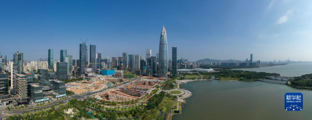 建設中的深圳灣文化廣場(chǎng)(10月25日攝,無(wú)人機照片)。