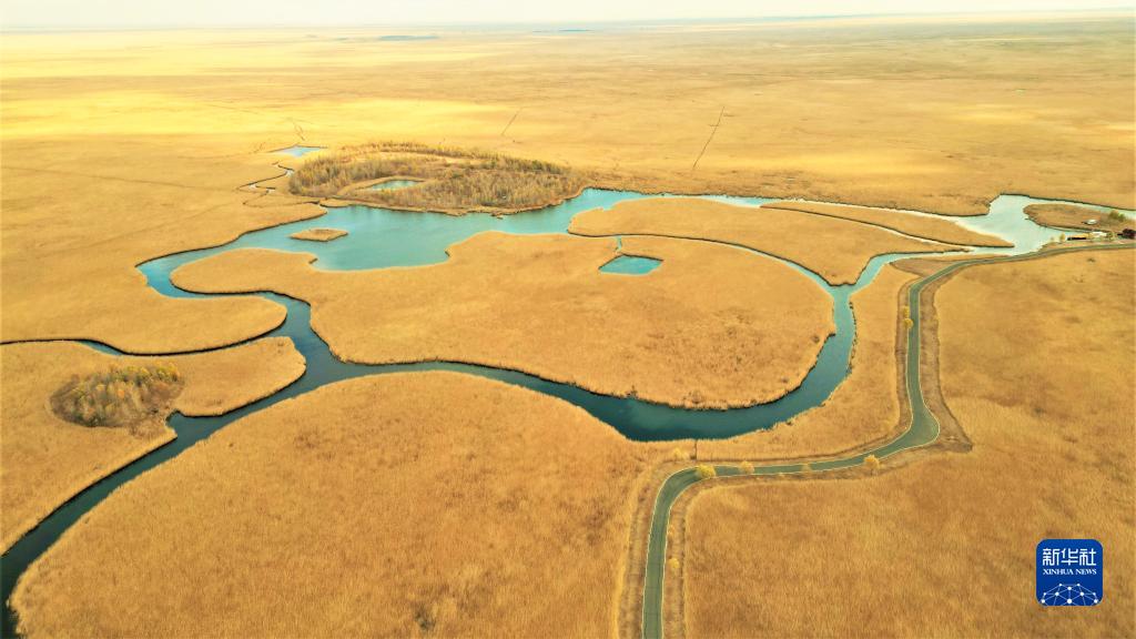 這是黑龍江扎龍國家級自然保護區秋景(2022年10月21日攝,無(wú)人機照片)。