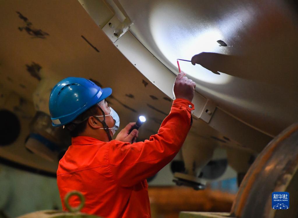 在哈電集團哈爾濱鍋爐廠(chǎng)有限責任公司的生產(chǎn)車(chē)間,工人在生產(chǎn)作業(yè)(10月24日攝)。