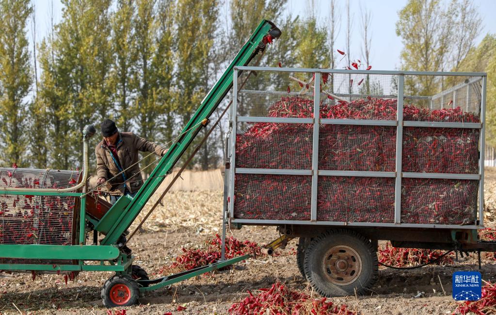 10月25日,在開(kāi)魯縣東風(fēng)鎮東方紅村,村民在田間收獲紅干椒。