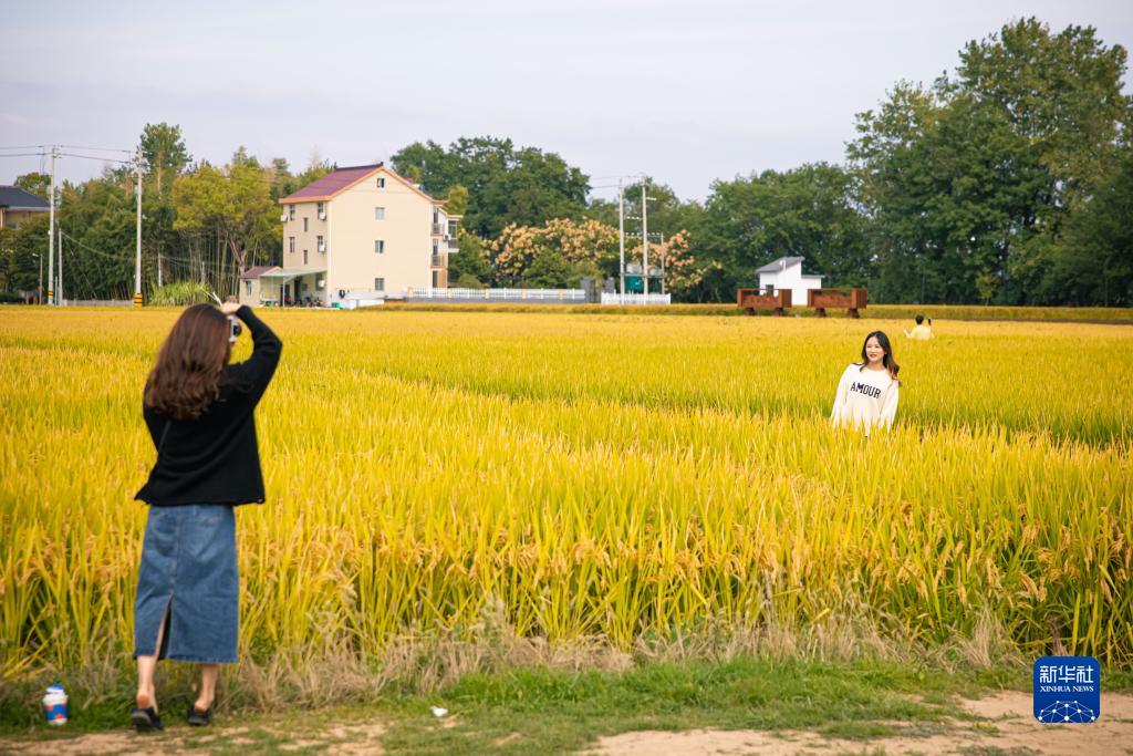 10月25日,游客在桐廬縣桐君街道梅蓉村的稻田內觀(guān)光。