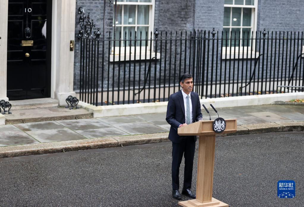 10月25日,里?!ぬK納克在英國倫敦唐寧街10號首相府前發(fā)表講話(huà)。