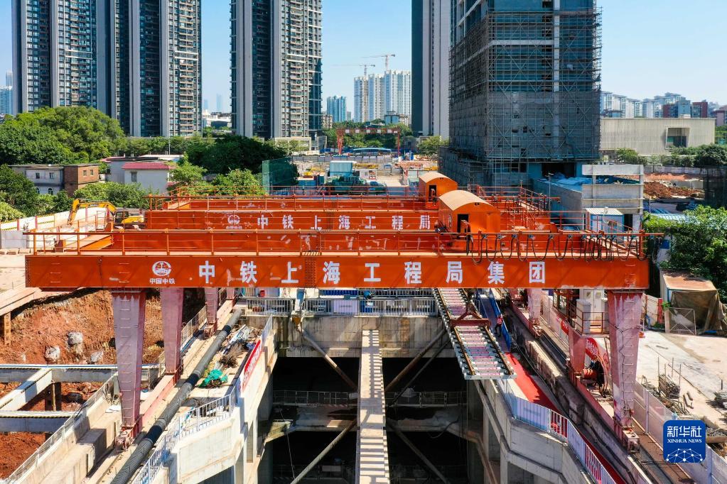 新華全媒+丨廣州首條環(huán)線(xiàn)地鐵鋪軌過(guò)江