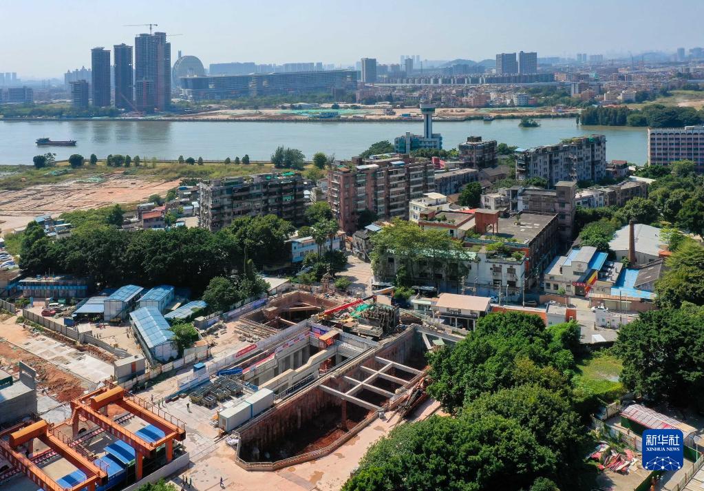 新華全媒+丨廣州首條環(huán)線(xiàn)地鐵鋪軌過(guò)江