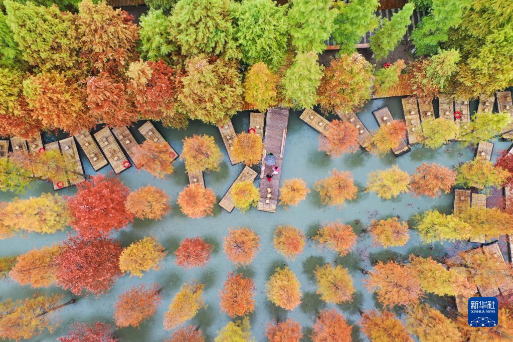 這是10月26日拍攝的泗洪洪澤湖濕地景區秋色(無(wú)人機照片)。