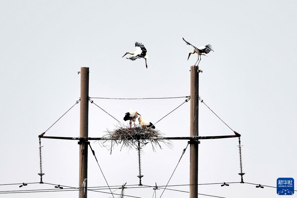 這是在山東黃河三角洲國家級自然保護區拍攝的東方白鸛(2021年5月13日攝)。