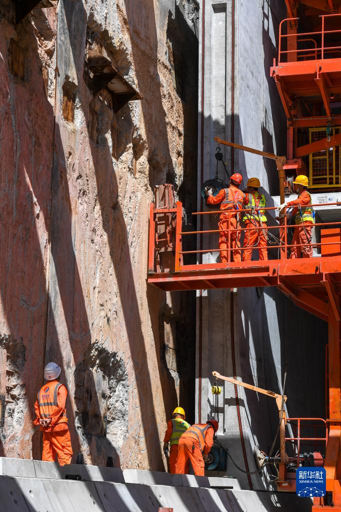 10月26日,在深圳地鐵華夏站施工現場(chǎng),中國電建的作業(yè)工人對構件進(jìn)行微調張拉、精準就位。
