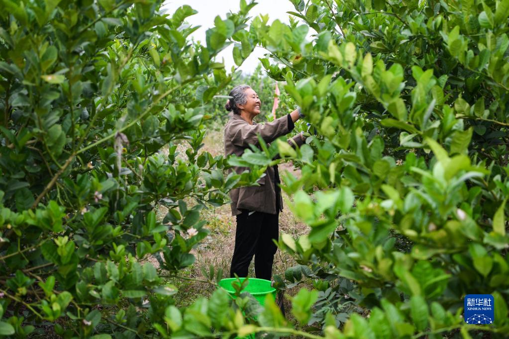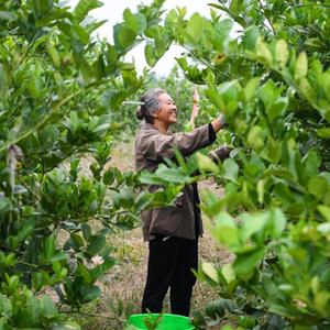 10月27日,在重慶大足區金山鎮天河村,村民在佛手種植基地采摘佛手。