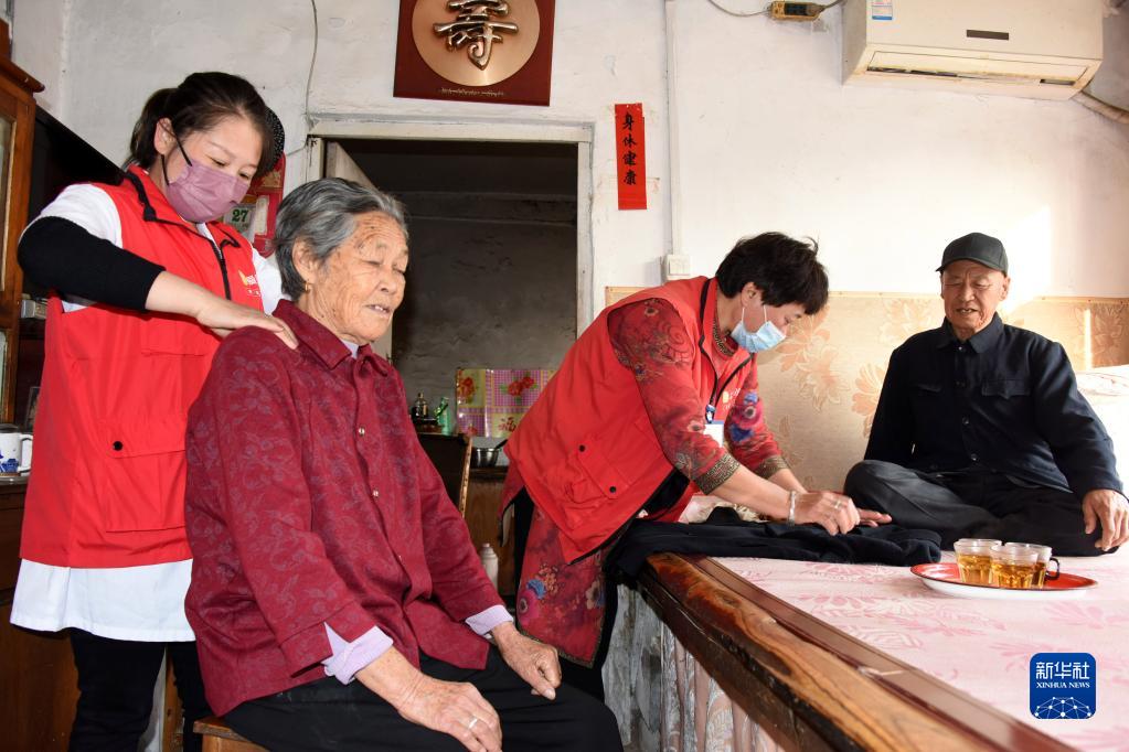 10月27日,在青島西海岸新區泊里鎮蟠龍李村,養老服務(wù)中心工作人員上門(mén)為老人提供服務(wù)。