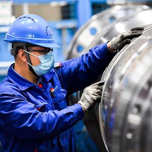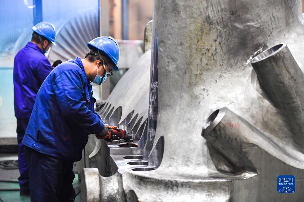 哈電集團哈爾濱汽輪機廠(chǎng)有限責任公司工人在生產(chǎn)車(chē)間作業(yè)(10月27日攝)。