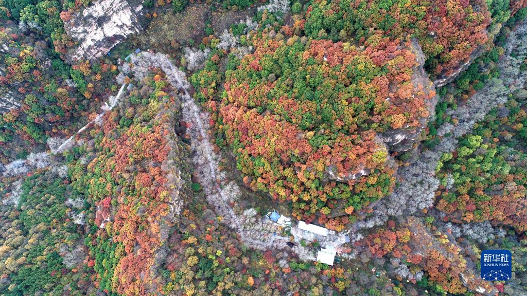 這是10月5日在河北省石家莊市平山縣拍攝的駝梁自然風(fēng)景區秋景(無(wú)人機照片)。