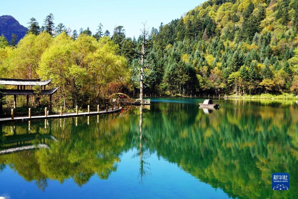 這是9月28日在甘肅省宕昌縣官鵝溝澤蕩措拍攝的秋景。