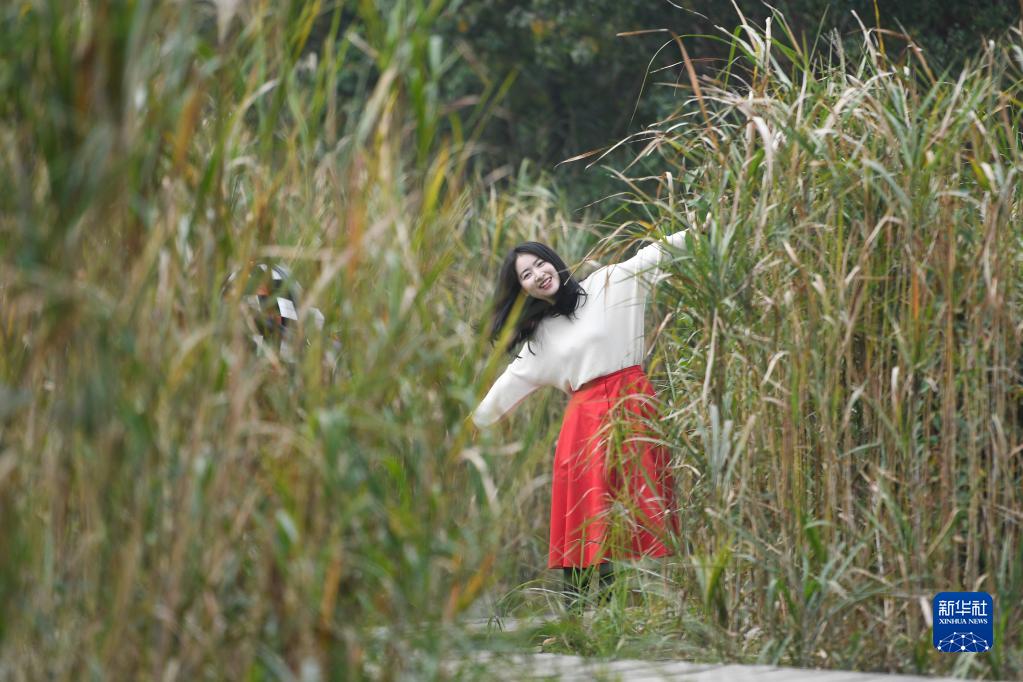 游客在西溪濕地欣賞蘆花時(shí)留影(2019年11月3日攝)。