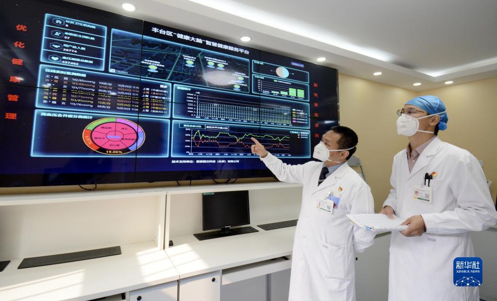 北京市豐臺區馬家堡社區衛生服務(wù)中心的醫生在應用“健康大腦”智能監測系統了解居民健康狀況(10月26日攝)。