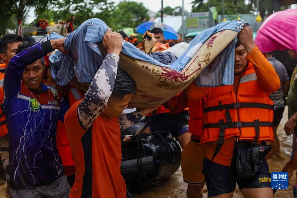 10月28日,在菲律賓馬京達瑙省帕朗,救援人員協(xié)助居民從洪災區轉移。