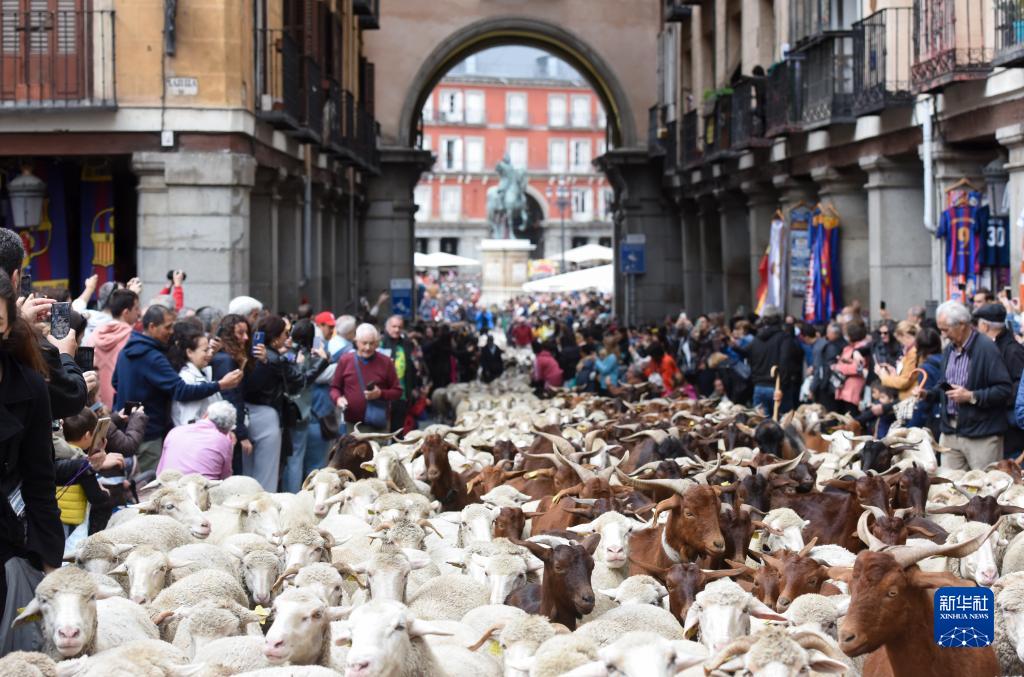 10月23日,人們觀(guān)看經(jīng)過(guò)西班牙馬德里街頭的羊群。