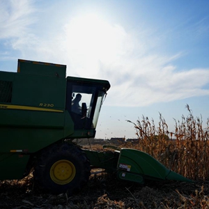 10月28日,在吉林省四平市梨樹(shù)縣國家百萬(wàn)畝綠色食品原料(玉米)標準化生產(chǎn)基地核心示范區,農民駕駛農機進(jìn)行秋收作業(yè)。