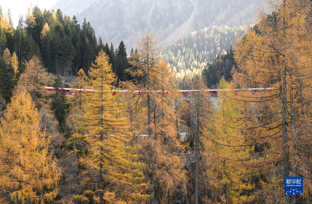 10月29日,世界最長(cháng)窄軌客運列車(chē)在位于瑞士阿爾卑斯山區的雷蒂亞鐵路網(wǎng)上行駛。