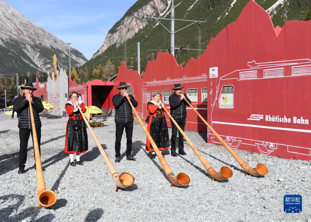 10月29日,在瑞士阿爾布拉,當地民眾吹奏阿爾卑斯山號。