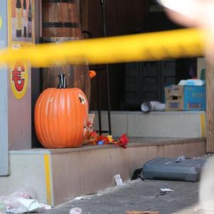 這是10月30日在韓國首爾拍攝的踩踏事故現場(chǎng)。