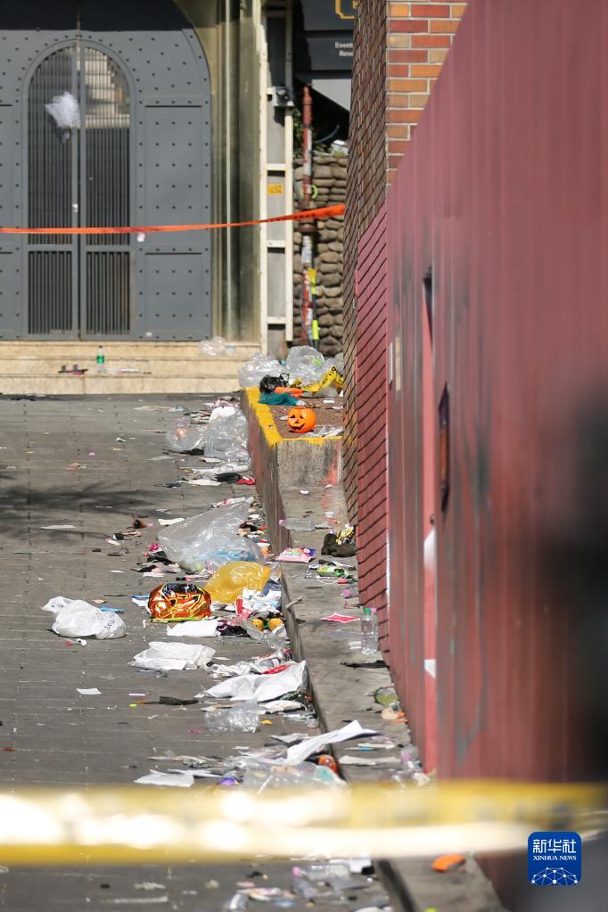 這是10月30日在韓國首爾拍攝的踩踏事故現場(chǎng)。