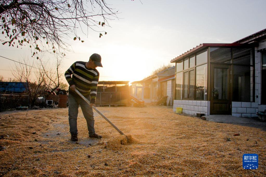 10月29日,在內蒙古通遼市科爾沁左翼中旗花吐古拉鎮三家子村,村民在晾曬玉米。