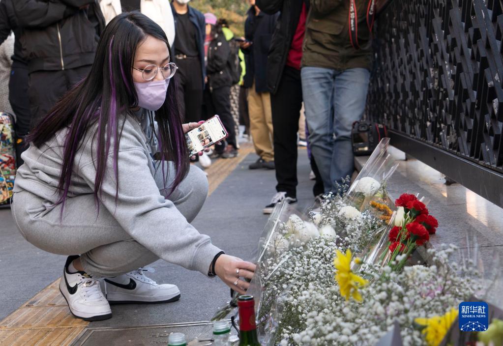 10月30日,民眾在韓國首爾市龍山區梨泰院洞一帶悼念踩踏事故遇難者。