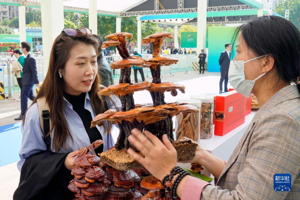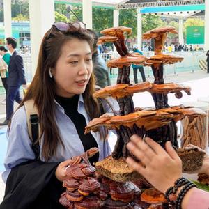 10月31日,參觀(guān)者在博覽會(huì )上了解、選購中藥材。