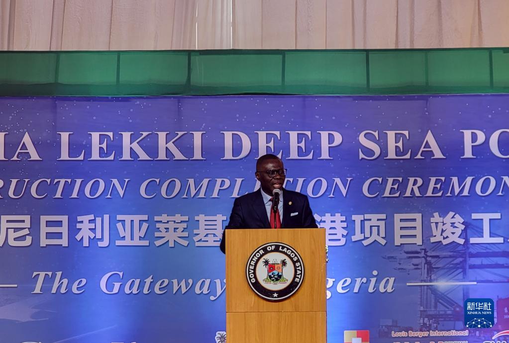 10月31日,在尼日利亞拉各斯,拉各斯州州長(cháng)巴巴吉德·桑沃-奧盧在中企承建的尼日利亞萊基深水港竣工儀式上致辭。