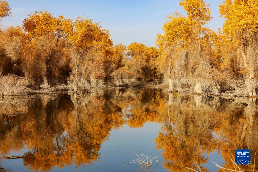 深秋時(shí)節,新疆塔里木河流域胡楊林披上“金裝”,與碧水、大漠相互映襯,構成一幅秀美的生態(tài)畫(huà)卷。新疆沿塔里木河流域分布著(zhù)約1500萬(wàn)畝胡楊林,是世界面積最大的胡楊林區。