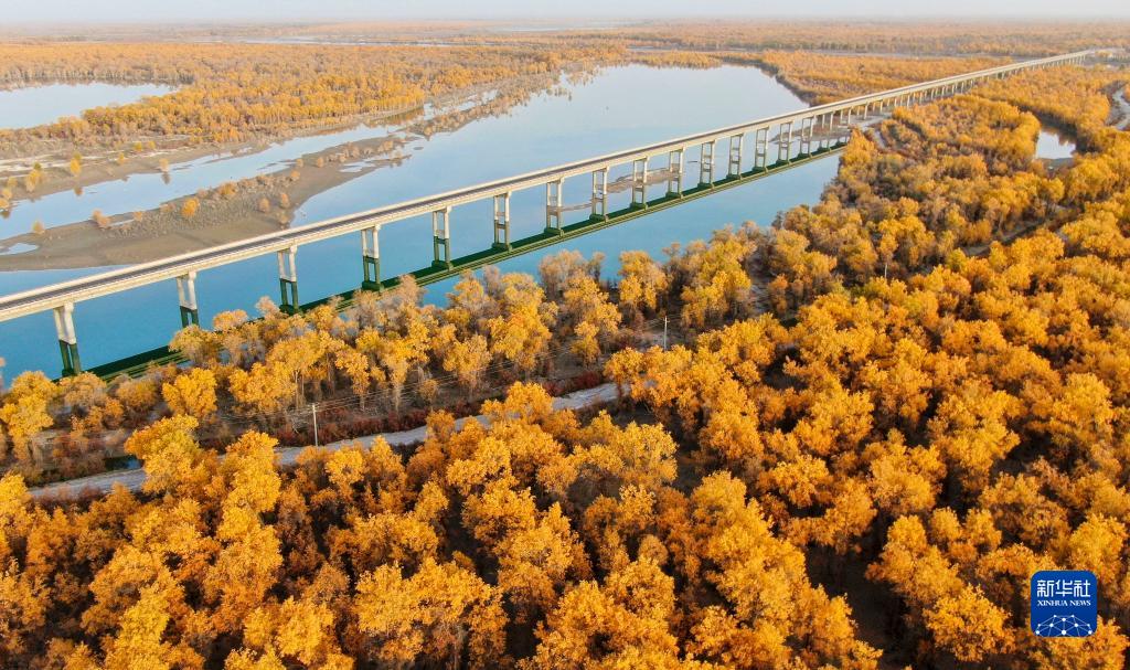 深秋時(shí)節,新疆塔里木河流域胡楊林披上“金裝”,與碧水、大漠相互映襯,構成一幅秀美的生態(tài)畫(huà)卷。新疆沿塔里木河流域分布著(zhù)約1500萬(wàn)畝胡楊林,是世界面積最大的胡楊林區。