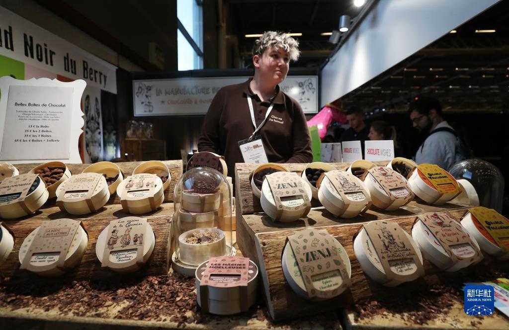 10月31日,一名展商在法國巴黎巧克力沙龍上推薦特色巧克力。