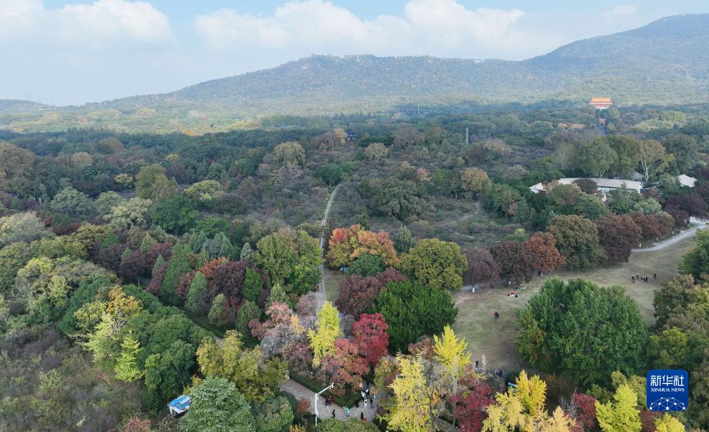 11月1日拍攝的南京鐘山風(fēng)景名勝區秋色(無(wú)人機照片)。