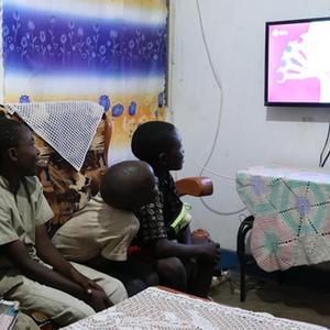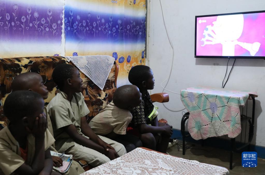 10月31日,在布隆迪布瓊布拉鄉村省穆蒂姆布齊一村莊,孩子們在村民家中觀(guān)看衛星電視節目。