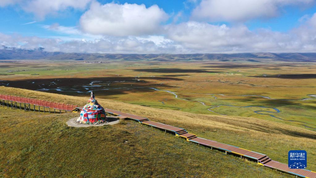這是瑪曲縣阿萬(wàn)倉濕地秋景(2022年9月21日攝,無(wú)人機照片)。