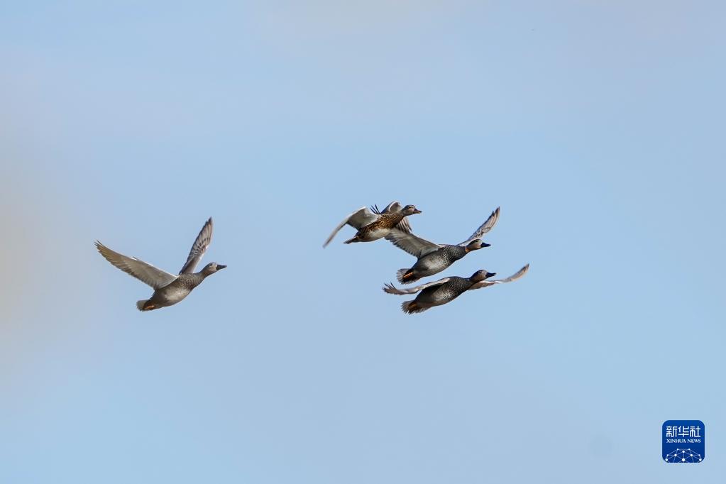 11月1日拍攝的北京野鴨湖國家濕地公園內的赤膀鴨(11月1日攝)。
