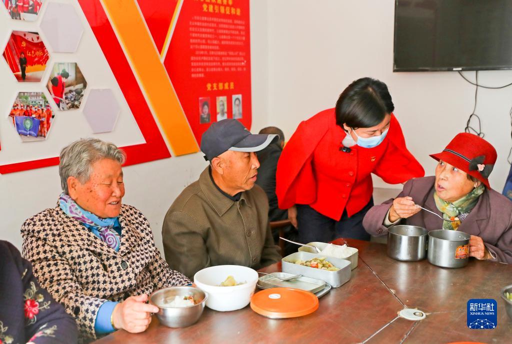 11月1日,在沈陽(yáng)市蘇家屯區解放街道金山社區愛(ài)心公益食堂,吳書(shū)香和就餐老人交流。愛(ài)心公益食堂免費向社區及周邊70歲以上有需求的老人提供午餐。