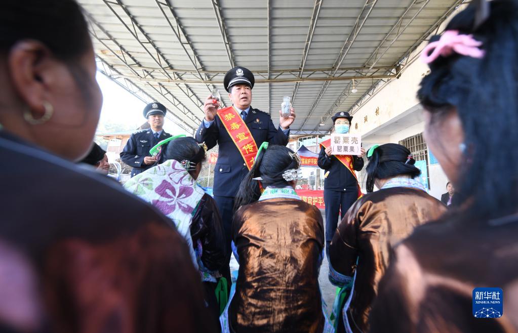 當日,廣西柳州市融水苗族自治縣禁毒辦、公安局在該縣桿洞鄉錦洞村開(kāi)展禁毒教育活動(dòng),通過(guò)講解禁毒知識等方式,幫助群眾識別毒品,了解毒品危害,增強禁毒意識。