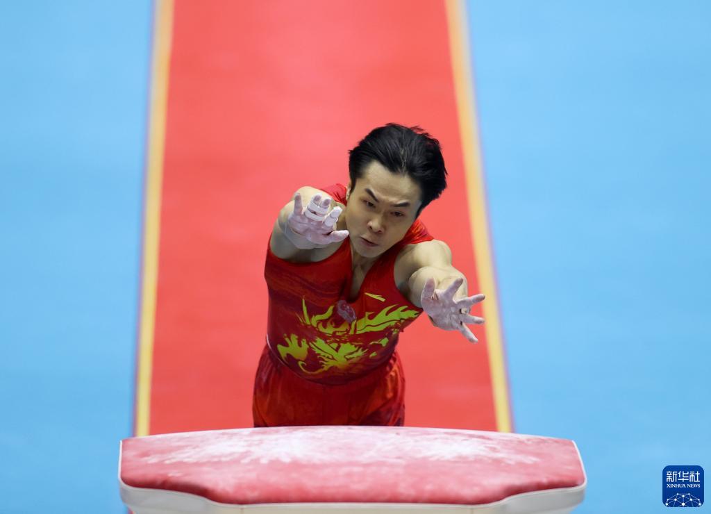 11月2日,中國隊選手楊家興在跳馬比賽中。