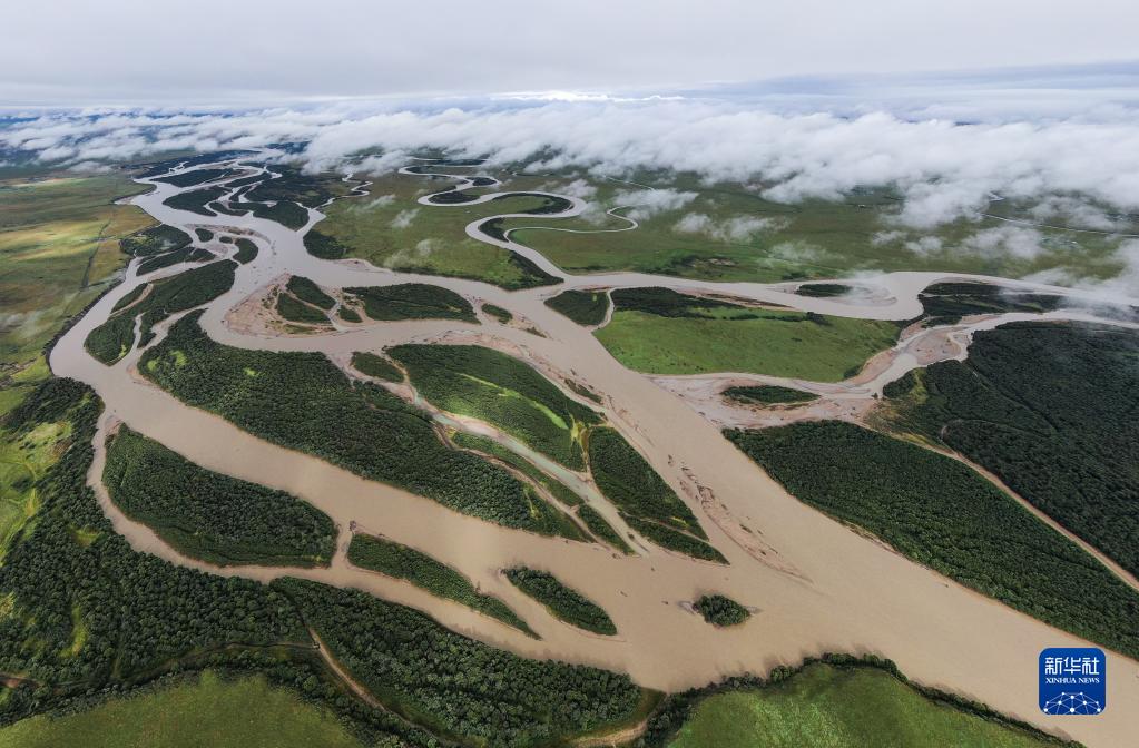 俯瞰黃河若爾蓋縣唐克鎮段一角(2022年8月15日攝,無(wú)人機照片)。