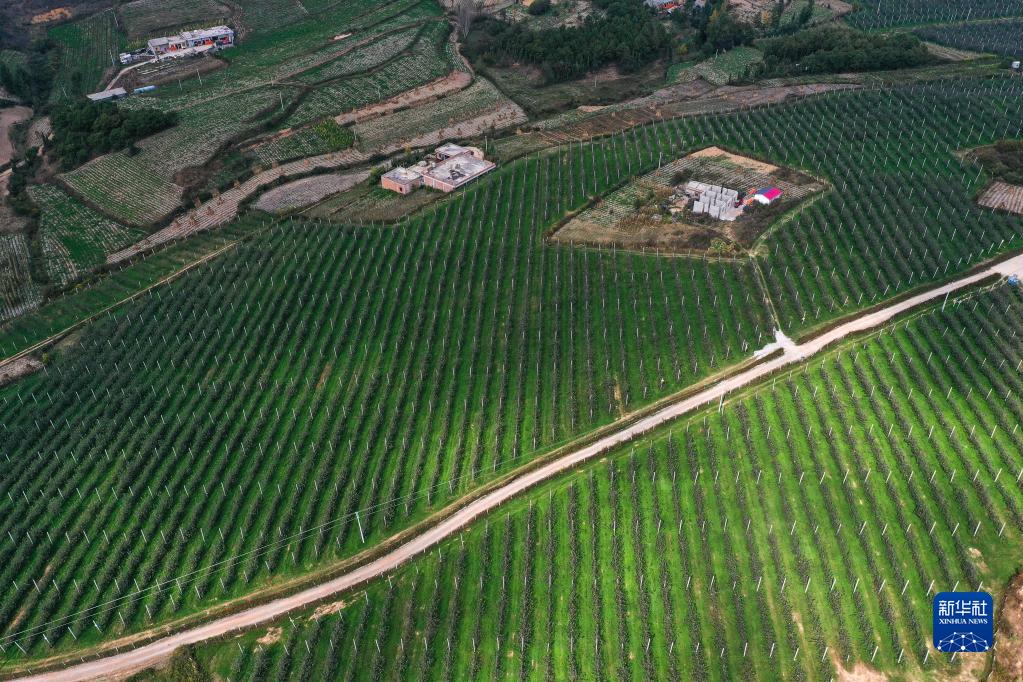 這是11月3日拍攝的貴州省威寧縣一處蘋(píng)果園(無(wú)人機照片)。