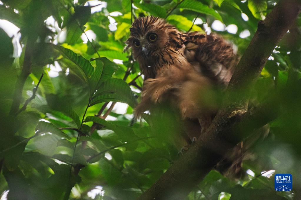 在新加坡雙溪布洛濕地保護區拍攝的馬來(lái)漁鸮(1月4日攝)。