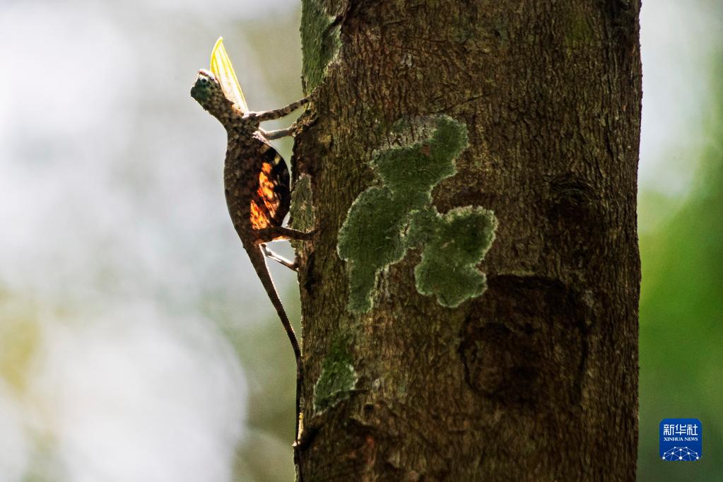 在新加坡雙溪布洛濕地保護區拍攝的飛蜥(5月30日攝)。