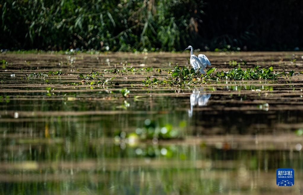 水鳥(niǎo)在西湖國家濕地公園覓食(10月27日攝)。