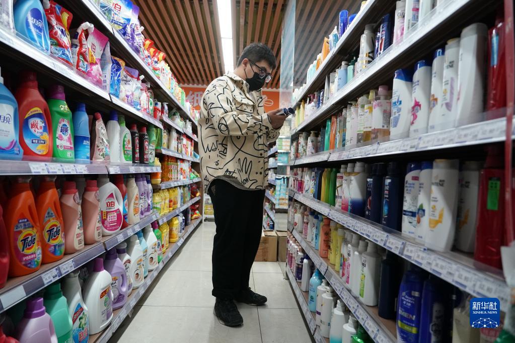 北京科技大學(xué)應屆畢業(yè)生石全在所居住的青年公寓配套的超市選購生活用品(10月23日攝)。