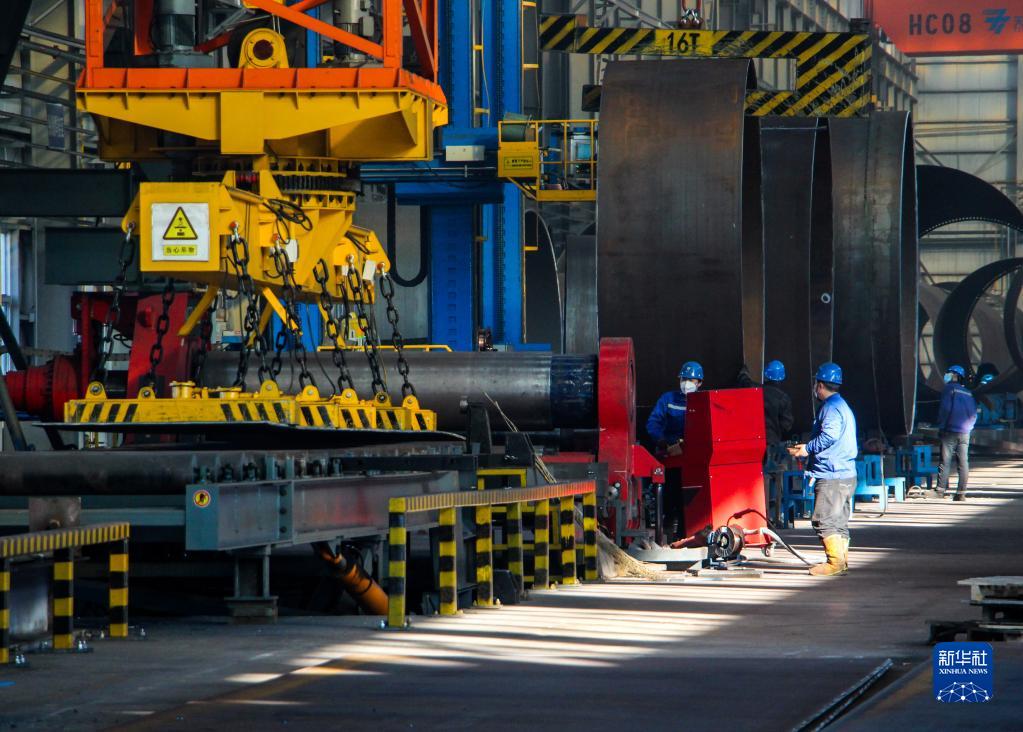 11月4日,在內蒙古通遼市天順風(fēng)電設備有限公司廠(chǎng)房,工人在生產(chǎn)線(xiàn)上工作。