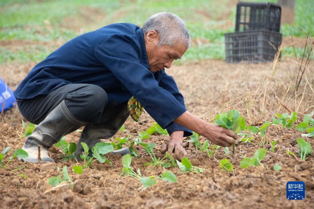 11月4日,在湖南省湘潭市湘潭縣中路鋪鎮柳橋村,村民在栽種油菜苗。