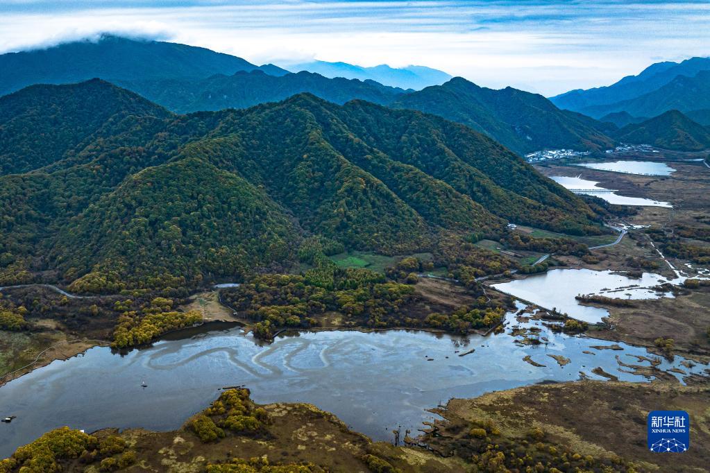 10月15日拍攝的神農架大九湖國家濕地公園一景(無(wú)人機照片)。