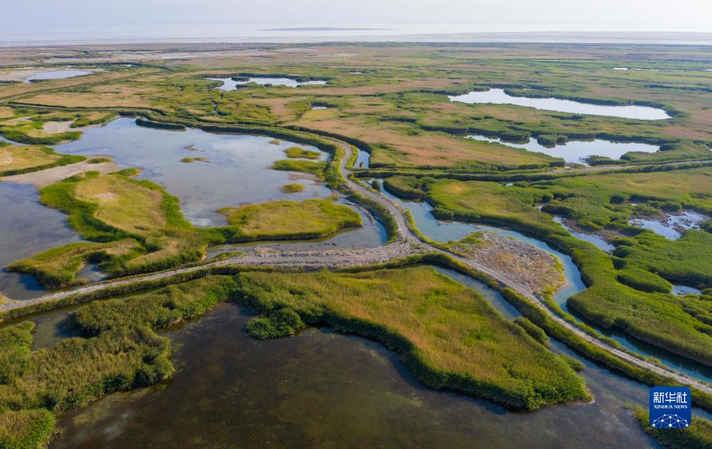 新疆艾比湖濕地國家級自然保護區一角(2020年7月14日攝,無(wú)人機照片)。