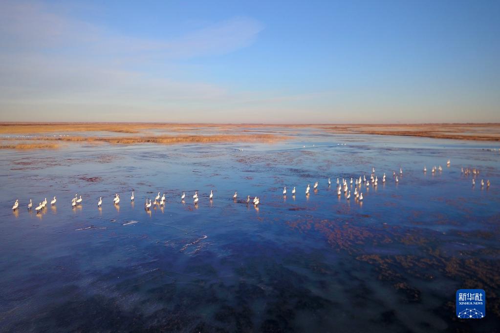 11月4日在吉林省白城市鎮賚縣莫莫格國家級自然保護區拍攝的候鳥(niǎo)(無(wú)人機照片)。